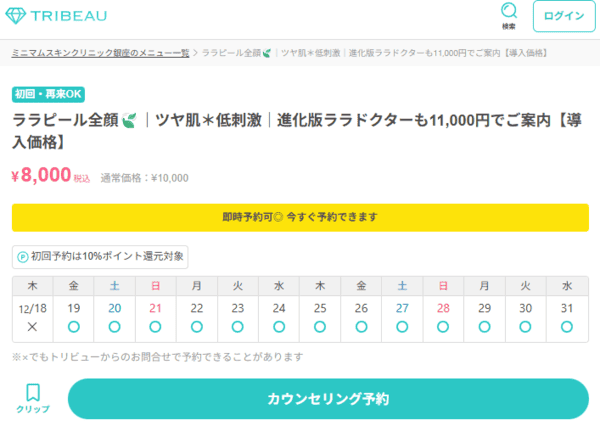 ちなみに今回はたまたまララピールを予約しているタイミングでニキビができたので、そのままララピールを受けましたが、担当してくださったナースさんいわく「ミラノリピールの方がよりニキビに効果的ですよ」とのことでした。