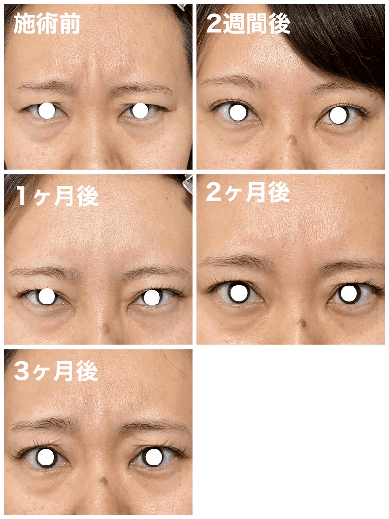 私も韓国製のボツリヌストキシン注射を、額・眉間・目尻・顎の4か所に打っています!