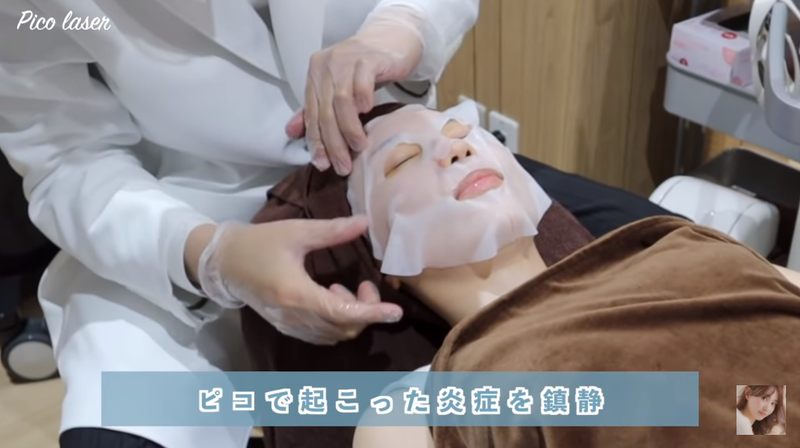 照射後はすぐにシートマスクをのせて肌を鎮静していきます。