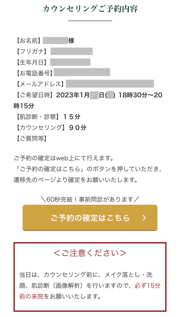 前日の連絡は無断キャンセル防止対策の美容クリニックあるあるなので、「何の電話だろう…?」と心配しなくて大丈夫です!