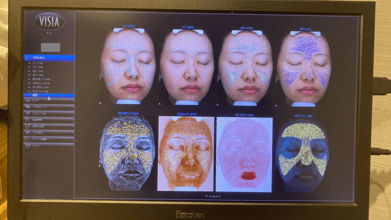 机の上のモニターに、私のVISIA結果が映し出されました!