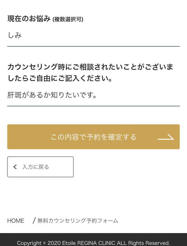 内容を確認して、問題なければ「この内容で予約を確定する」をタップする。