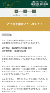 メールが届くので、メール本文内の「ご予約の確定はこちら」ボタンをタップする。