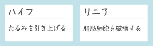 ハイフはたるんだ筋肉を持ち上げる働きをするのに対し、リニアは脂肪の分解ができるんです。