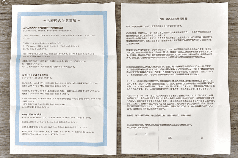 お会計前に、注意事項の読み合わせと同意書のサインを行います。