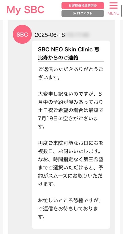 SBCネオスキンクリニック恵比寿はめちゃくちゃ人気で、予約が取りづらい!