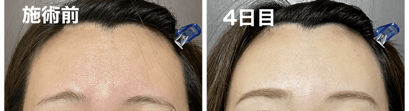 施術後4日目のボトックスが効き始めたくらいのタイミングの写真ですが、すでにおでこの小じわが減ってつるんと感が出ているのがわかると思います👇