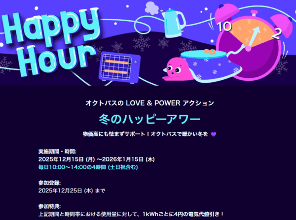 たとえば毎日電気代割引になるこんなキャンペーンとか👇
