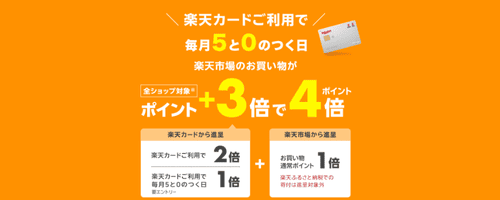 • 楽天カードの引き落とし口座を楽天銀行に設定で、楽天ポイント+0.3倍。