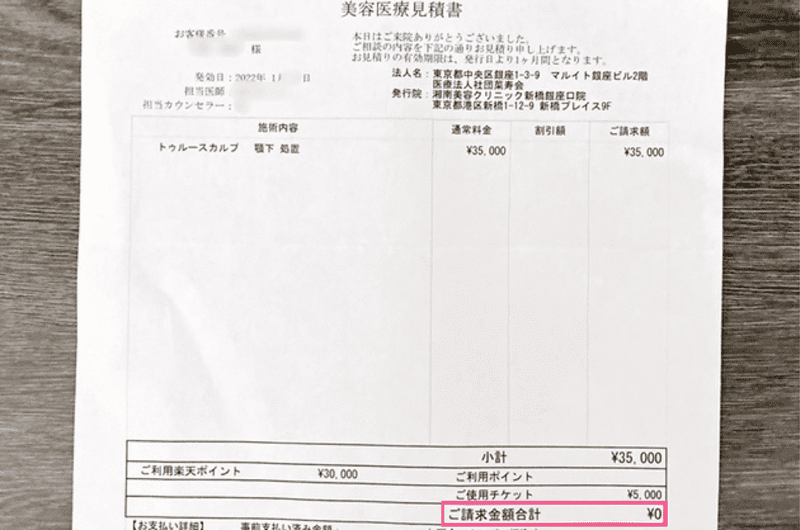 「裏ワザってほんとに効果あるの?」と思った方のために、実際に私が湘南美容クリニックで施術を受けた時の“割引明細”を大公開!