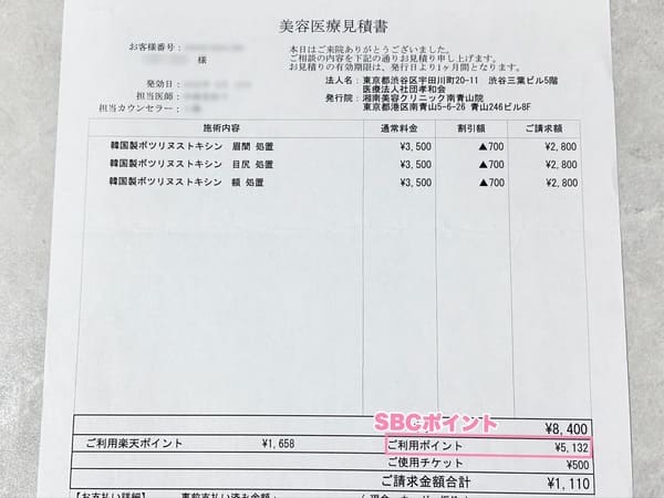 1回のお会計で3万円までという上限はありますが、クーポンやSBCポイントを組み合わせることで、3万円以上の施術も無料化してきました。