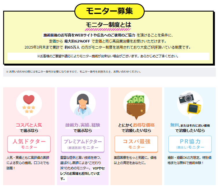 - モニターや院限定キャンペーンも確認済み