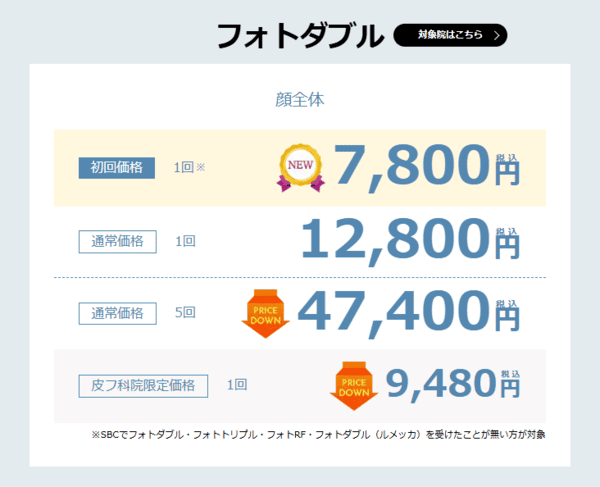 SBCでは、初回の人限定の特別価格が用意されており、フォトダブルやピコトーニングなどの人気施術を破格で受けることができます💕