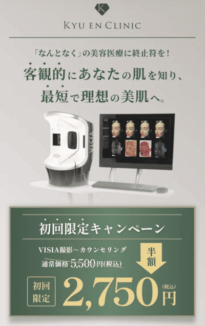無料で肌診断機VISIAの撮影ができ、結果をもとに数ある治療の中から最適な施術をアドバイスしてもらえます。