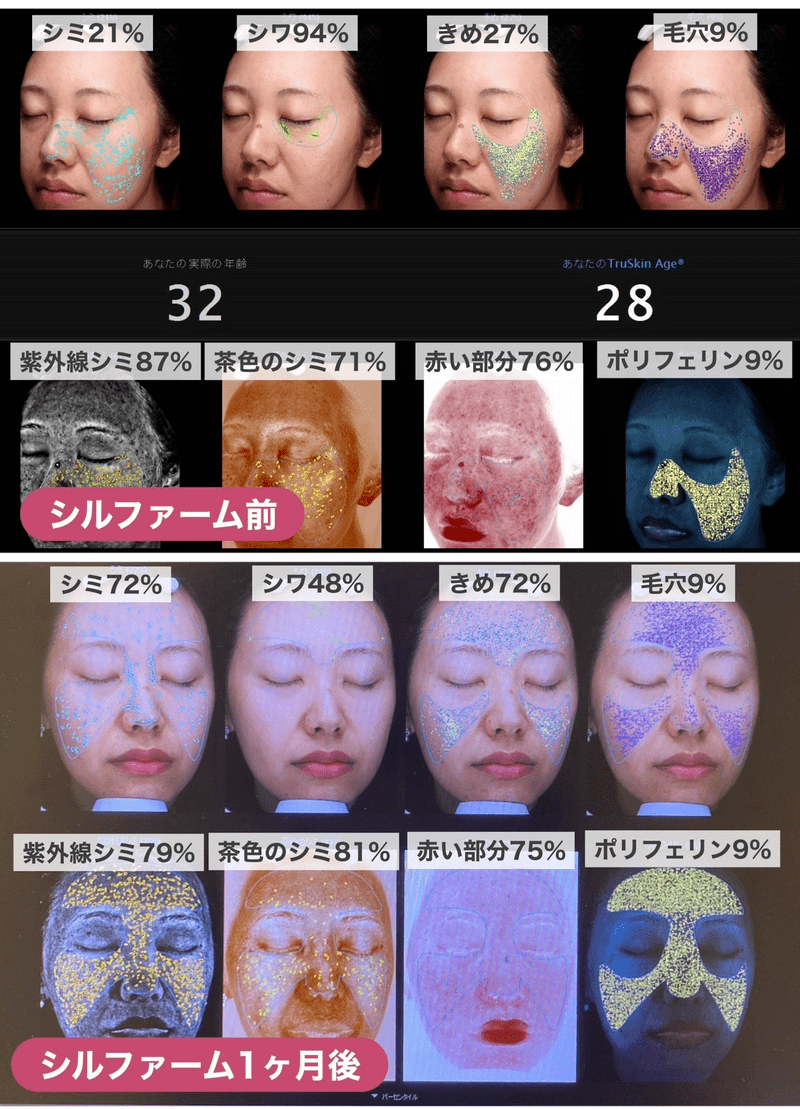 特に、シルファームが得意とするシミやキメといった項目の改善がすごい。