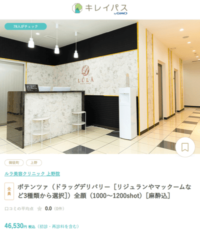 公式サイトを見るポテンツァ22,000円~なしキレイパス経由の予約でマックーム・リジュラン・簿ツリヌストキシンが初回46,530円御徒町駅南口から徒歩1分WEB・LINE・電話10時~19時ルラ美容クリニック上野院予約ページ